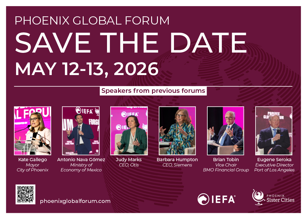 Presented by the International Economic Forum of the Americas and Phoenix Sister Cities, the theme of the Forum is Unite. Ignite. Transform. This conference gathers corporate, business and thought leaders to find solutions to global challenges. Join hundreds of business and community leaders from around the globe to engage in critical dialogue around topics such as: The Global Economy, USMCA- The Path Ahead, Energy Solutions, Water Management, Workforce, Securing Critical Inputs, Building Digital Infrastructure, The New DNA of Healthcare, and Mobility.