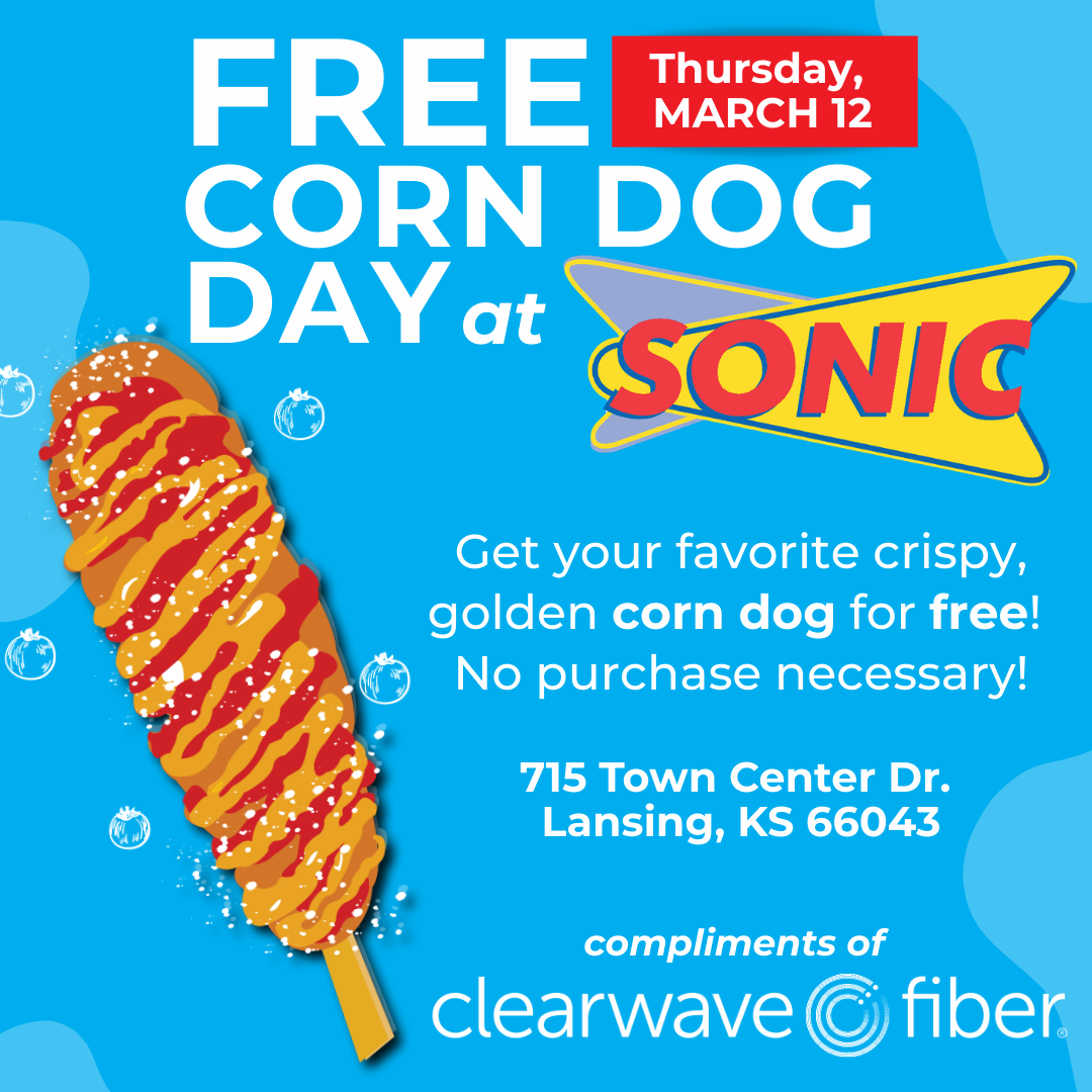 Free Corn dogs at Sonic while supplies last compliments of Clearwave Fiber. Details attached to flyer.