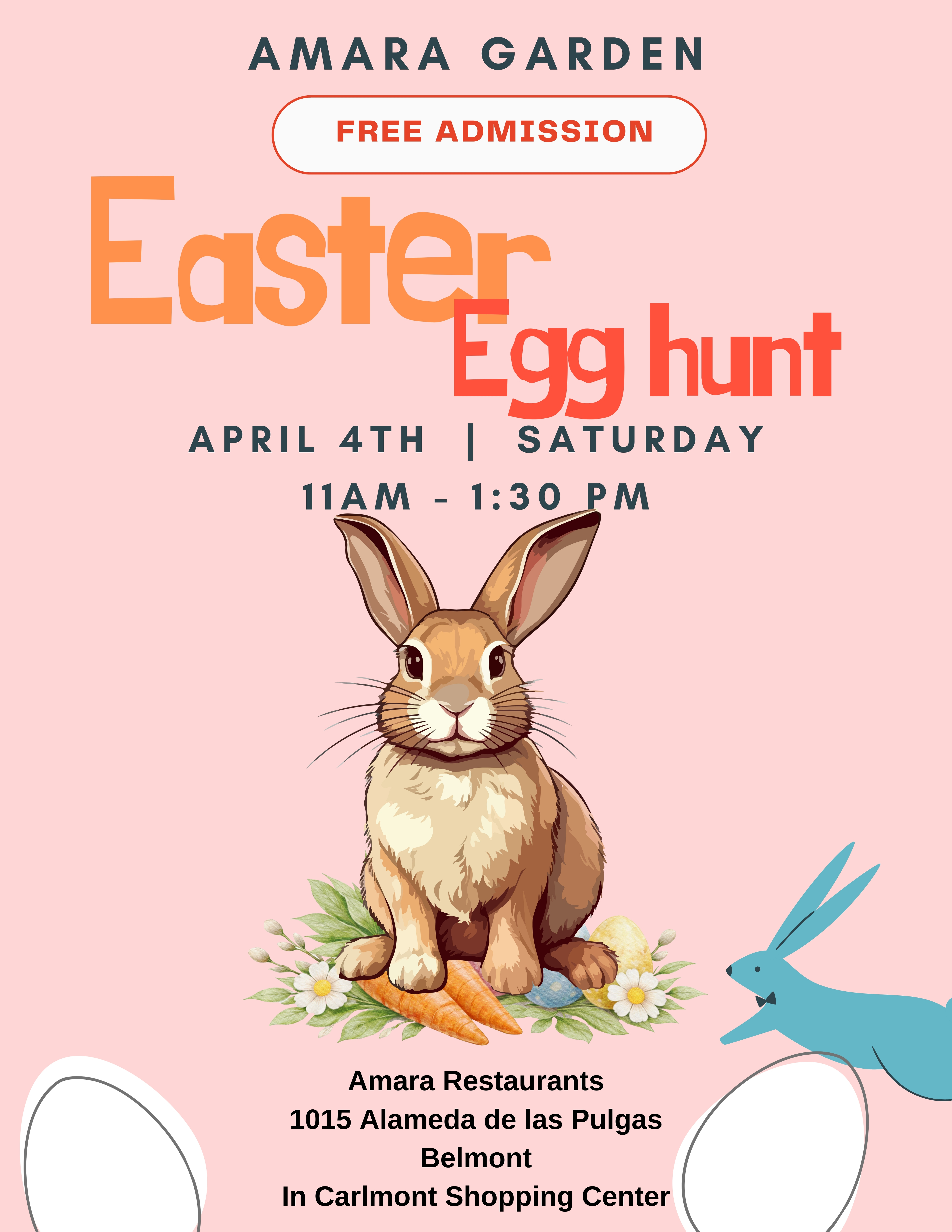 Celebrate spring with a fun-filled Easter Egg Hunt at Amara Restaurant in Belmont! Families are invited to join this festive community gathering featuring an exciting egg hunt for kids and special photo opportunities with the Easter Bunny.