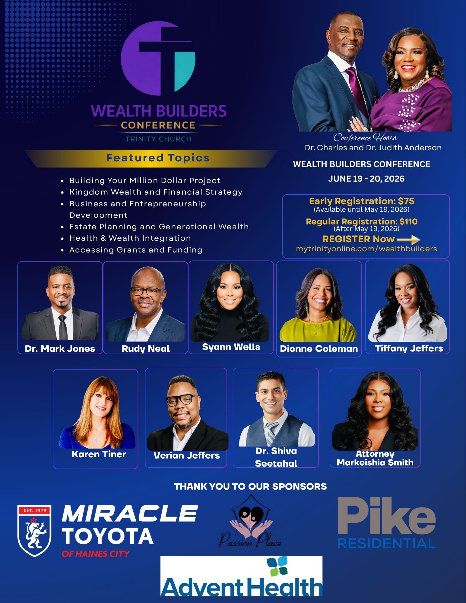 Trinity Church Wealth Builders Conference - June 19th - 20th, 2026 - 2795 N 10th Street, Haines City, FL - Stewardship - Wealth - Legacy & more. Visit https://www.mytrinityonline.com/wealthbuilders to register and for more info. Early Bird Registration Fee - $75 (until May 19th); Regular Registration Fee - $110. Click HERE for the flyer.