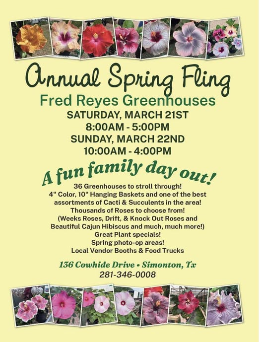Our 9th Annual Spring Fling at Fred Reyes Greenhouses is happening next weekend, and the nursery is looking absolutely beautiful!