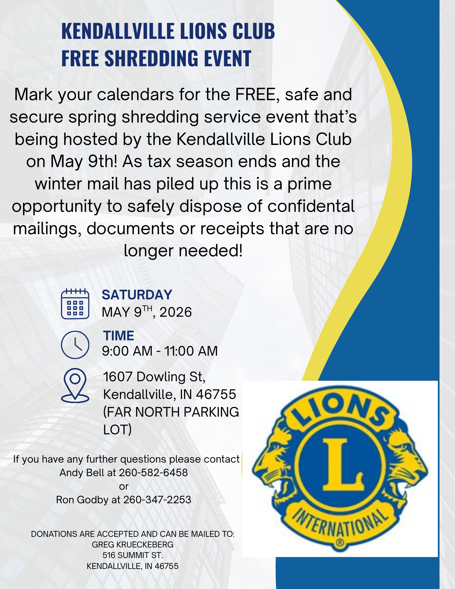 Kendallville Lions Club FREE Shredding Event