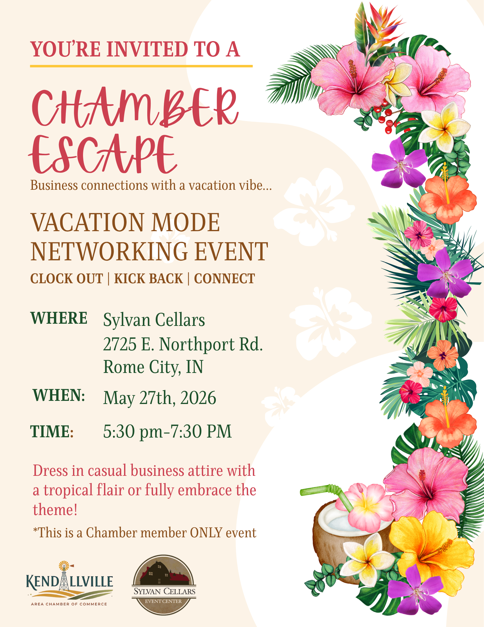 This is a FREE networking event at Sylvan Cellars for Chamber members ONLY and we'd love to see you there.