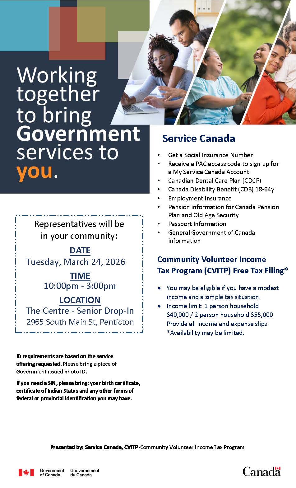 Drop-In Clinic: Service Canada Representatives are here to assist with a variety of services.