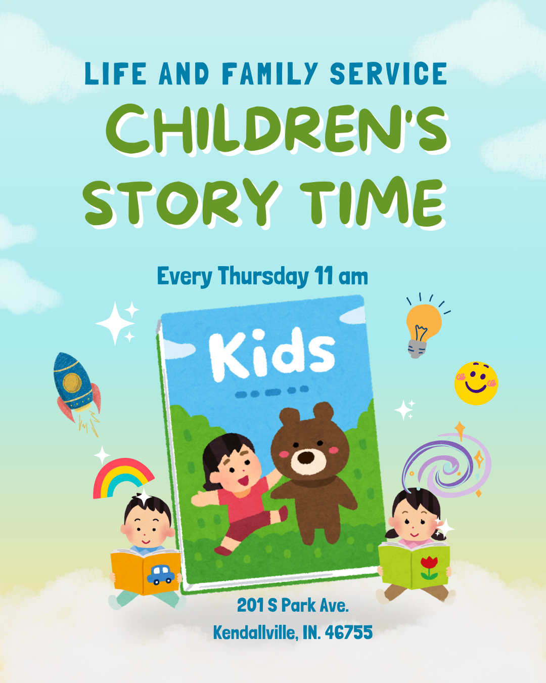 Bring your child into Life and Family Service at 201 S. Park Ave, in Kendallville each Thursday at 11am for an epic story time!