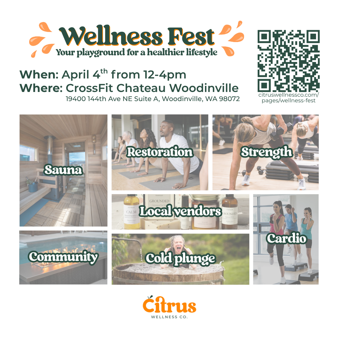 Wellness Fest is a local community gathering designed to help you escape the daily grind and recalibrate your system. Come break a sweat in fitness classes, find relaxation and ease with restorative movement and stretching, and experience the biological "reset" of contrast therapy (sauna and cold plunges). Between sessions, you can rinse off under our Vitamin C Filtered Showerhead, explore essentials from local wellness vendors, or unwind by the firepit. You’ll leave with a clearer mind, a realigned body, and a practical toolkit for your daily well-being. Tickets are just $50 and space is limited, so be sure to get yours now before they're gone!