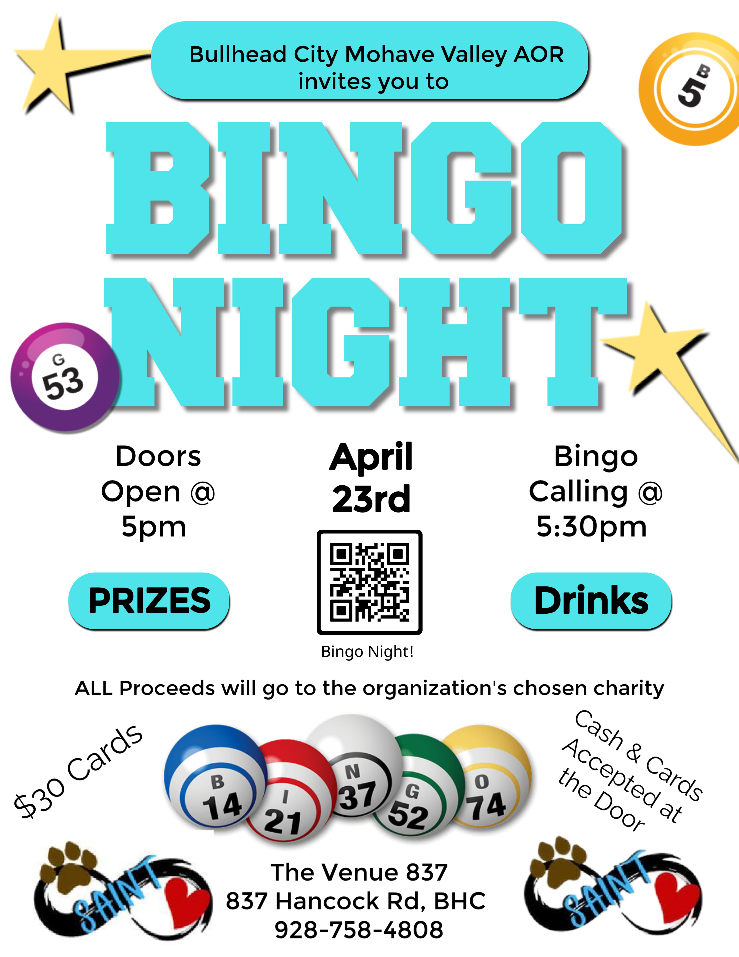 🕔 Doors Open at 5PM | Bingo Starts at 5:30PM