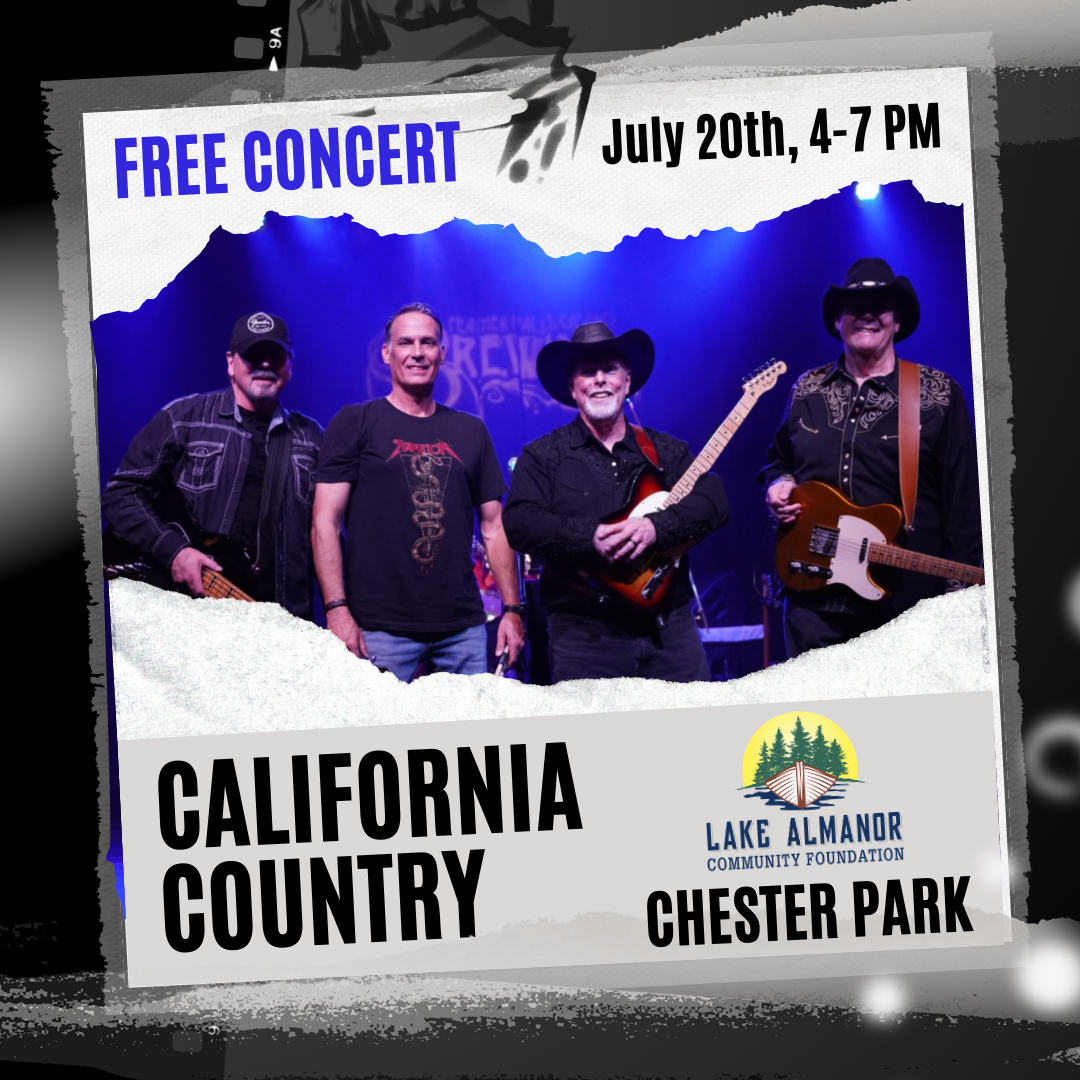 Think of Dwight Yoakam, Blake Shelton, Jason Aldean and Alabama in one band, add a few of their originals from the album Country Boy, and you have California Country. They are band that loves to entertain and audiences go away wanting more. Brought to you by the Lake Almanor Community Foundation.