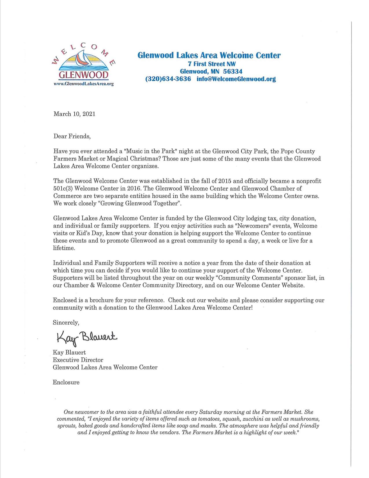 Thank you to this week's Community Comment's Sponsors: John R. & Mary Stone, Phil & Catherine Stumpf, McMahon Oil, Midwest Health Benefits, Midwest Machinery and Minnewaska Abstract & Title, LLC.
