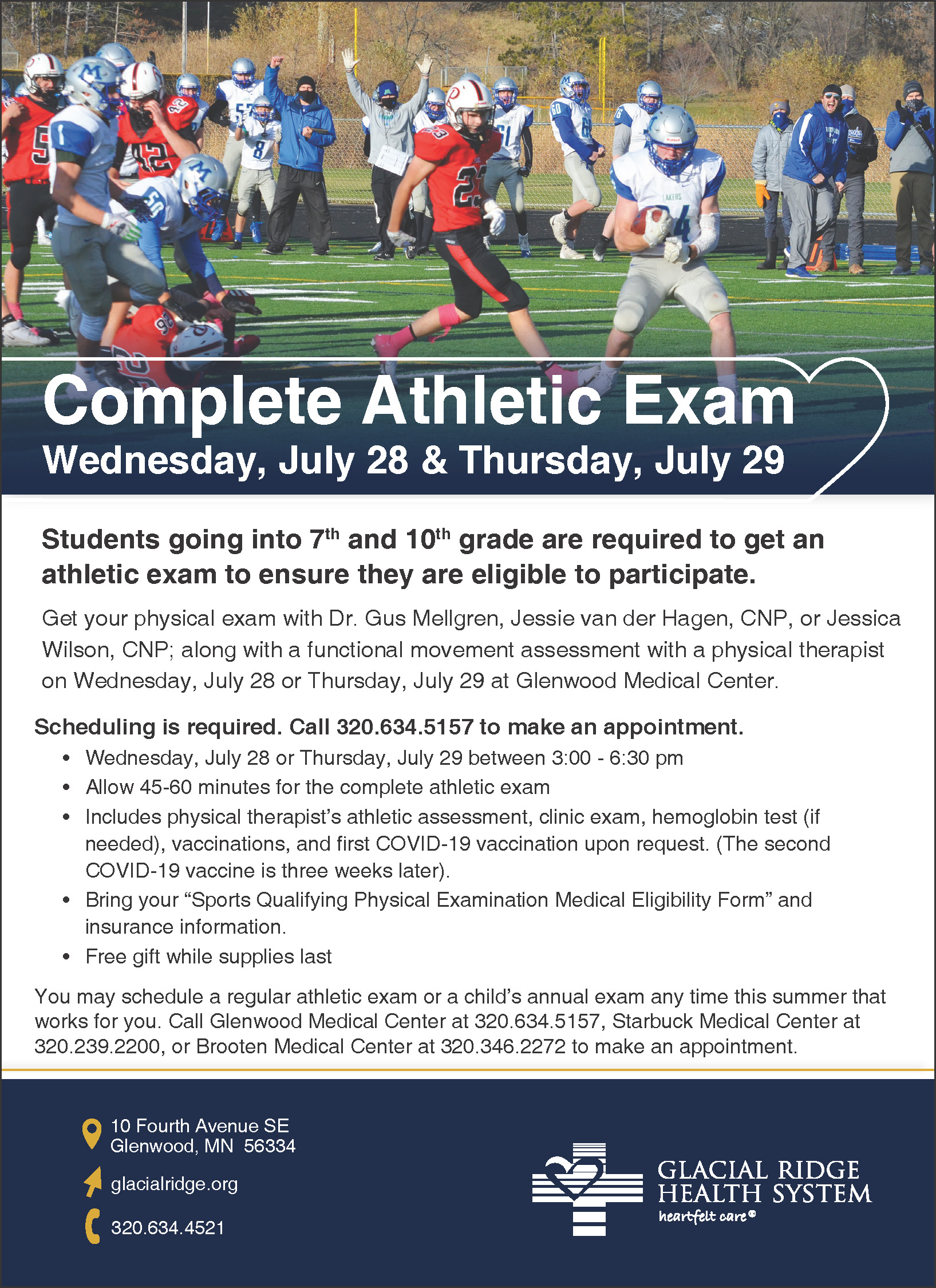 Registration will be online or over the phone. Please call 320-834-7800.