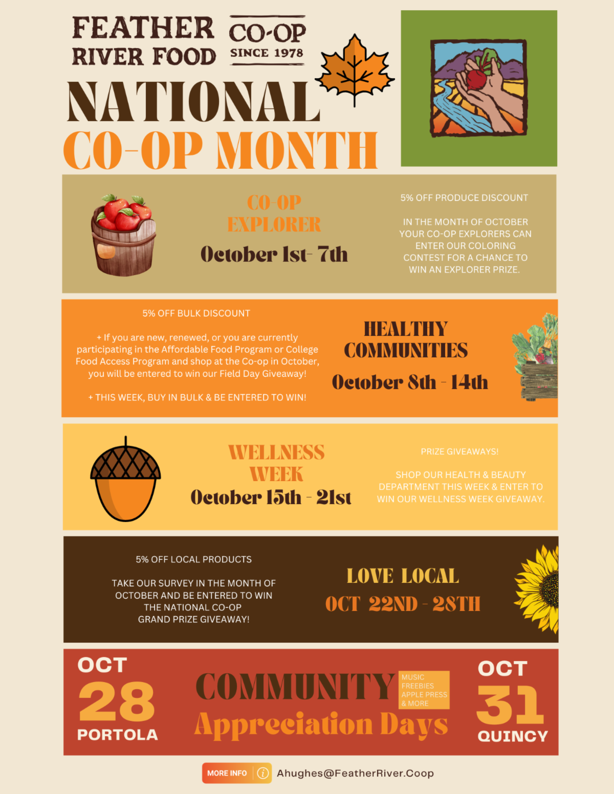We warmly invite you to participate in the excitement of our National Co-op experience! Our doors are open to all, and we would love for you to join us. We have something for everyone. Discover featured local organizations who will be set up weekly at each of our storefronts. Take our survey, explore our weekly sales, and enter our giveaways. We can't wait to see you! Everyone can Shop. Anyone can Join. Be part of the excitement! |