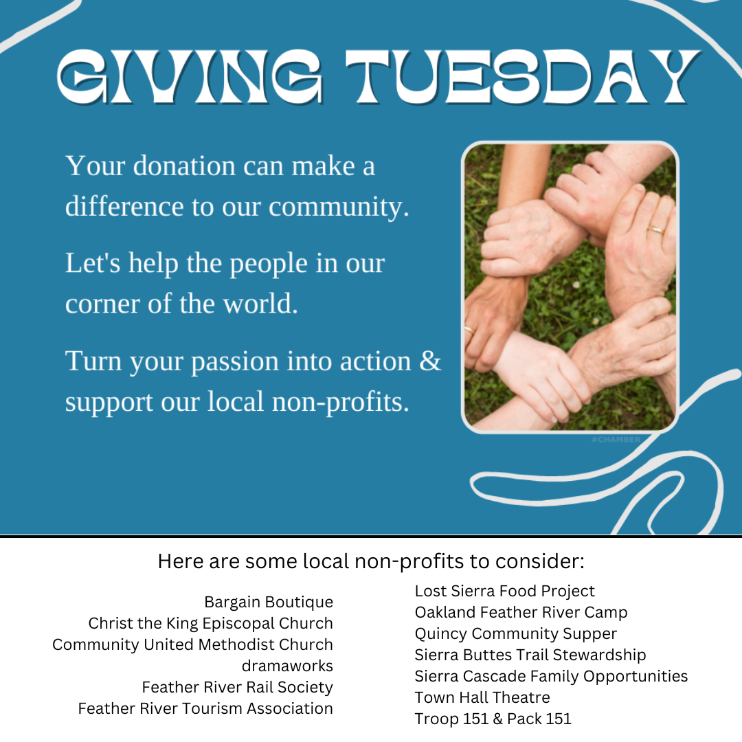 Want to participate but need help? Give us a call at (530) 394-0541 or email us at info@quincychamber.com and we'd be happy to take the photo for you or share some other ideas! |