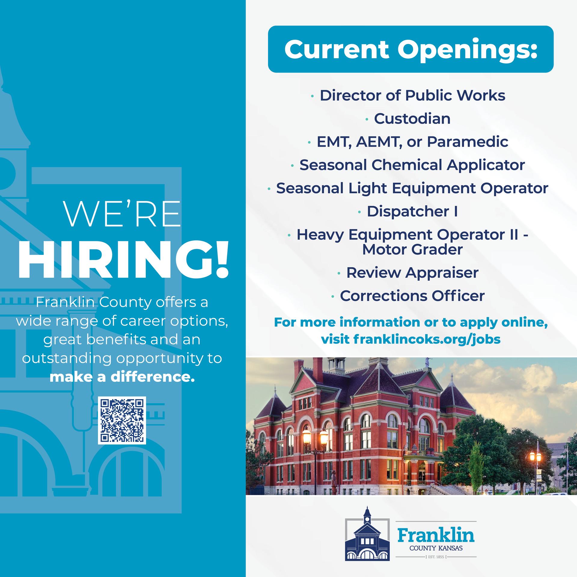 If interested, contact RaJeanna Barnhart at 785-242-7440 |