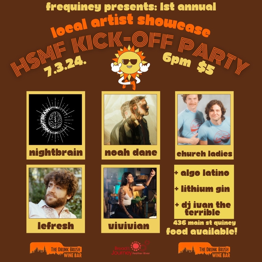 | Thursday July 11th, 2024 5:30-7pm Featured Artist: Lithium Gin To be held at Dame Shirley Plaza Bring a blanket or a chair to sit on and come join us for a lovely evening of music in the park. Does listening to music make you hungry? Quincy's own La Cabaña will have food for sale. |