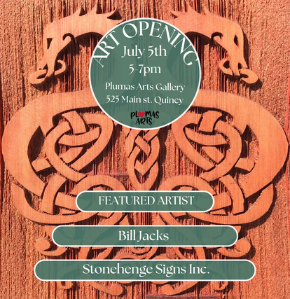 | Featured Artist: Bill Jacks ~ Stonehenge Signs Friday July 5th, 2024 Plumas Arts Gallery 5-7pm