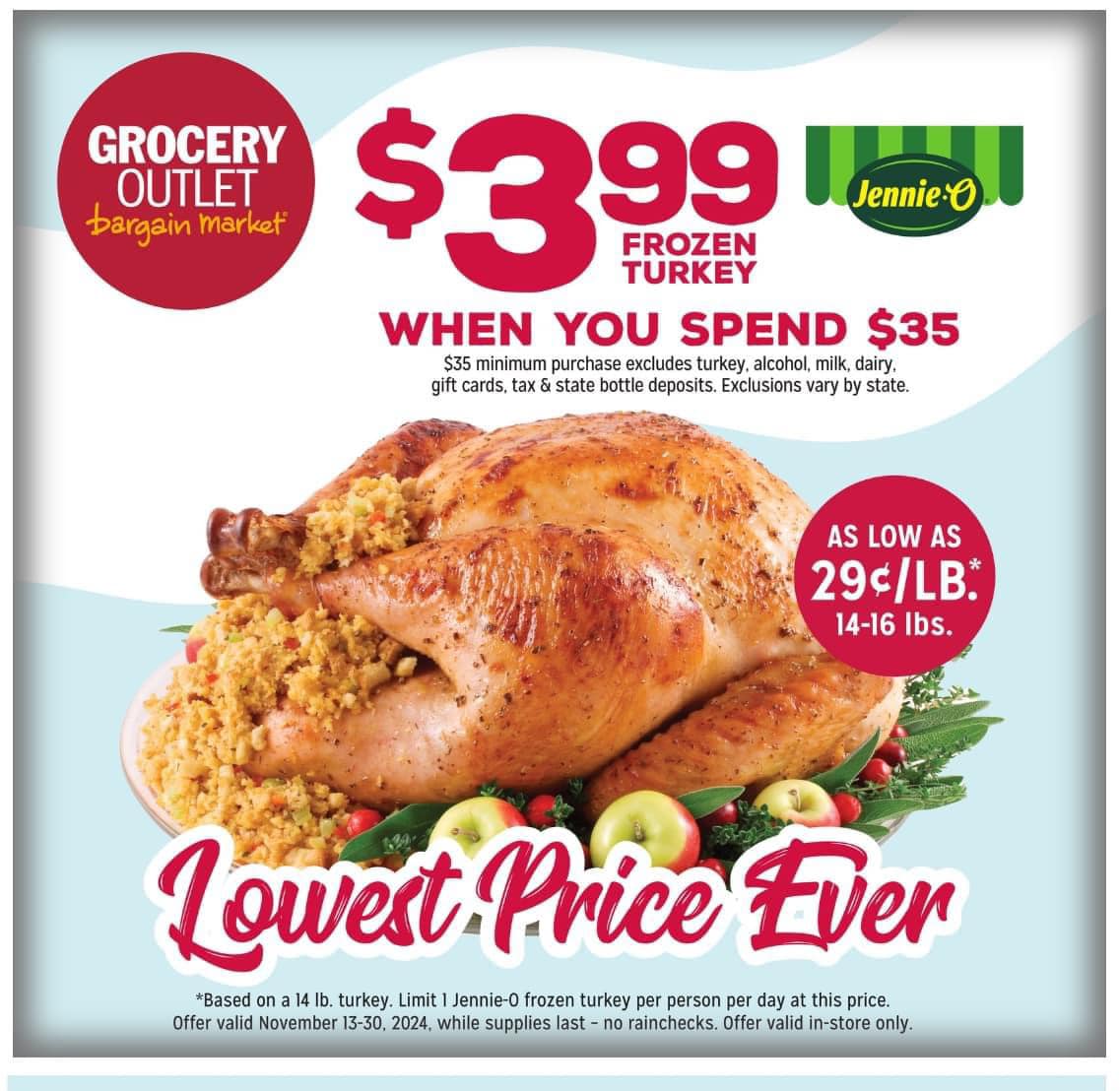 Get your Thanksgiving turkey for just $3.99 when you spend $35 on other items Whether you're prepping a full feast or just stocking up, we've got all your holiday essentials. From party-size Frito Lay chips to juicy blueberries and classic Ocean Spray Cranberry Sauce, plus Thomas Farms lean ground beef and fresh asparagus - you'll have everything you need for a delicious celebration.