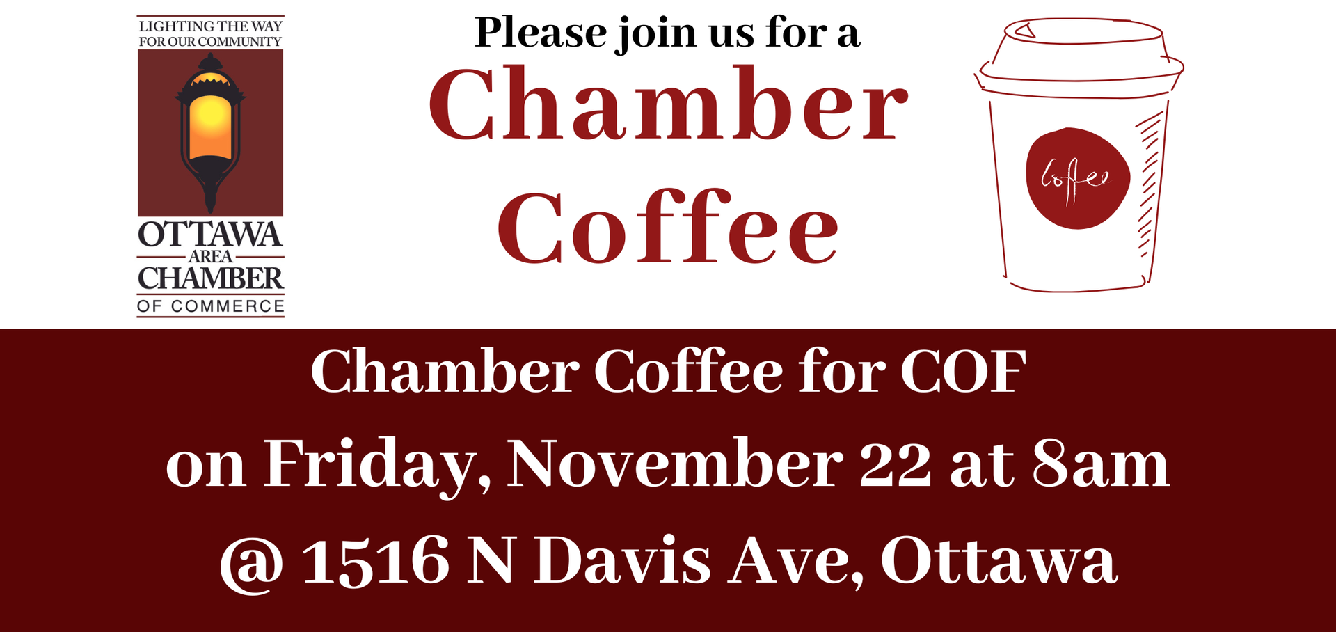 November 22 - 8 am, Chamber Coffee for COF @ 1516 N Davis Ave, Ottawa,