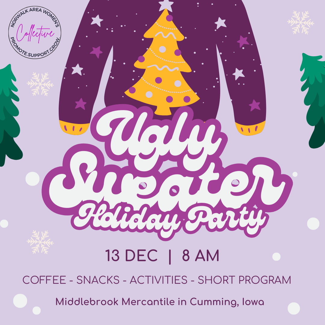 Grab your ugly holiday sweaters and join the Norwalk Area Women's Collective for a festive morning of coffee, meaningful conversations, and a few surprises. Together, we’ll unwrap a Holiday Prize Ball and create our very own Diamond Dot Ornament. We’ll also be unveiling the 2025 Program Calendar, thoughtfully crafted by the committee based on your fantastic feedback in October. Next year is packed with exciting personal and professional development topics sprinkled with plenty of fun along the way. We can’t wait to share it with you! Details: Who: Norwalk Area Women's Collective What: Coffee, Table Discussions & Creative Fun