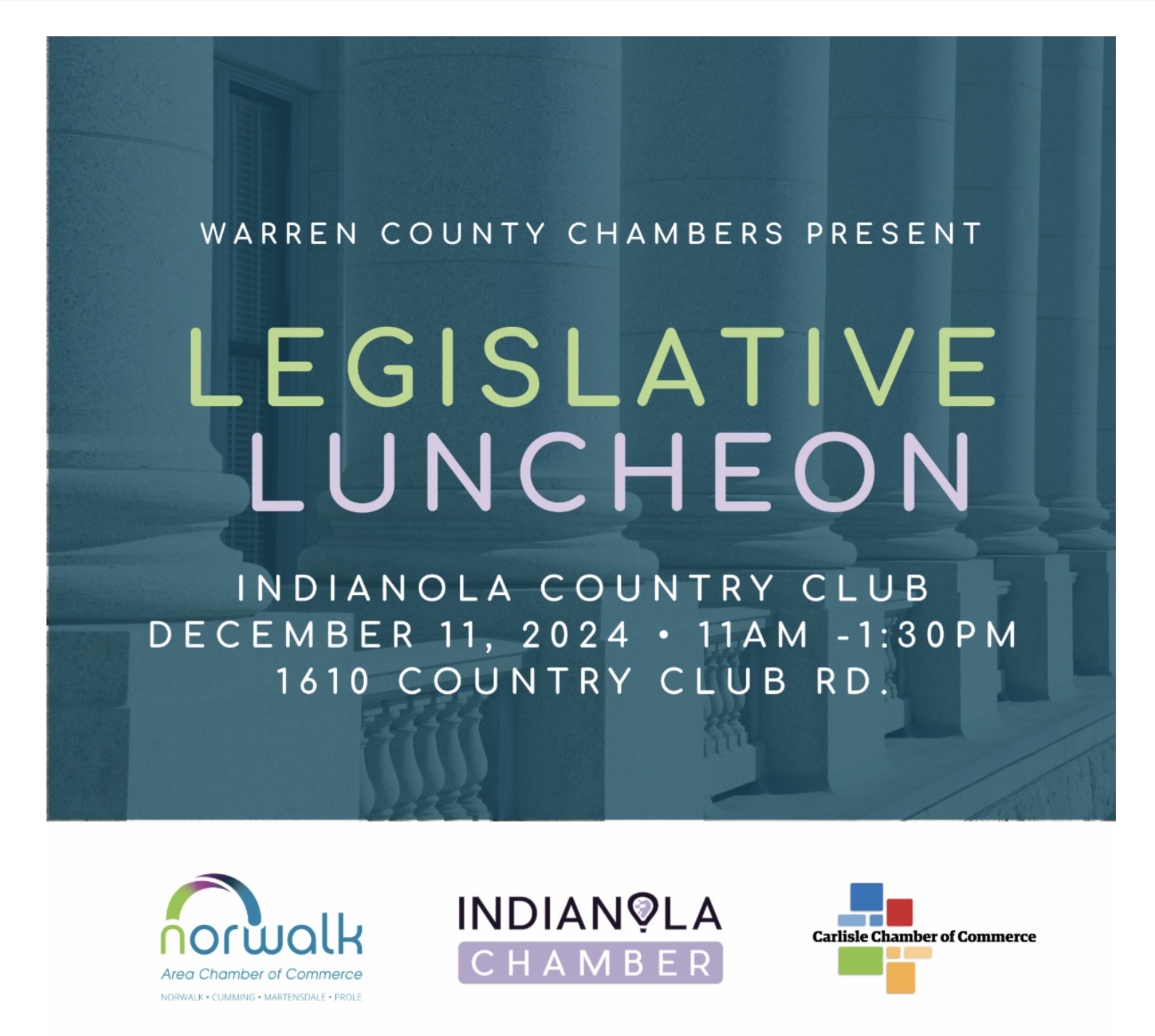 The Indianola, Norwalk, and Carlisle Chambers are hosting their Annual Warren County Legislative Leaders Luncheon.