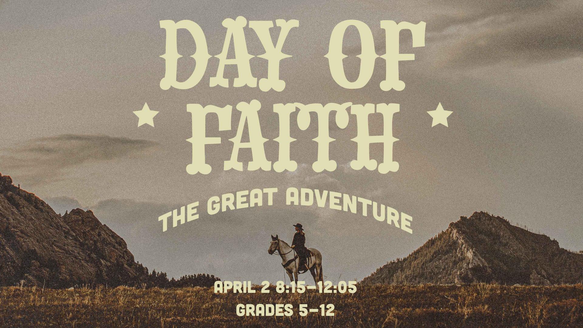 | Day of Faith on April 2 from 8:15-12:05 for 5th-12th students.