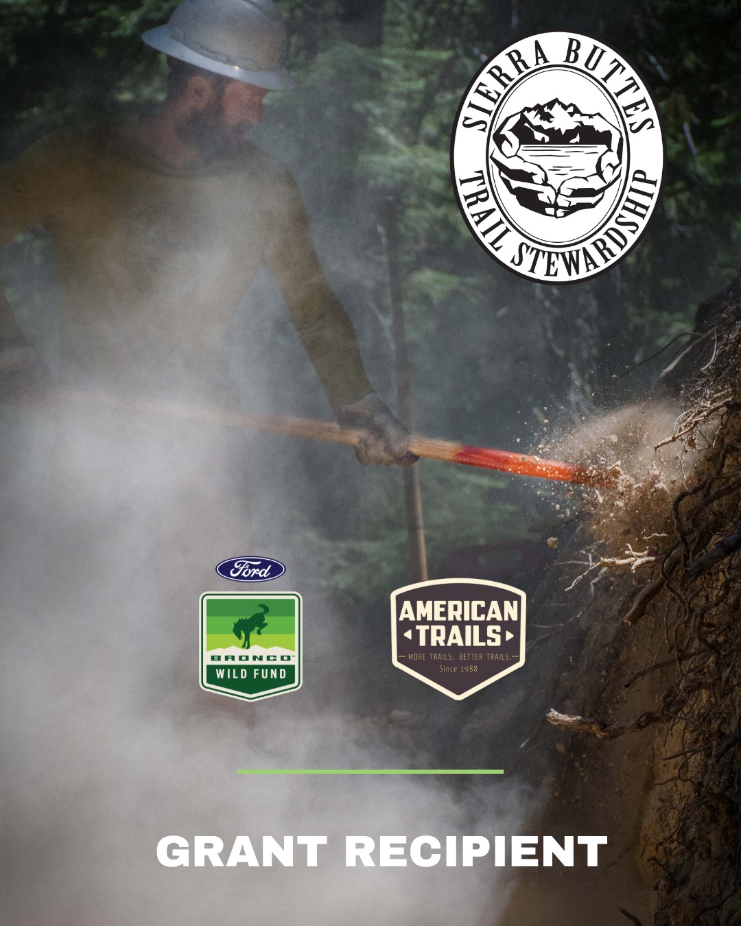 American Trails is supporting our work on Mt. Hough this season through a $9,681 grant from the Trails Capacity Program, which is funded by the Bronco Wild Fund, a Ford Motor Company program dedicated to connecting people to the outdoors, responsibly. This grant will ensure that the nearly 80-mile multi-use Mt. Hough trail network remains maintained throughout the season, a task that will fall solely on the SBTS Pro Trail Crew this season in light of the federal budget and staffing cuts that have drastically reduced the number of Forest Service personnel working on the Plumas National Forest.