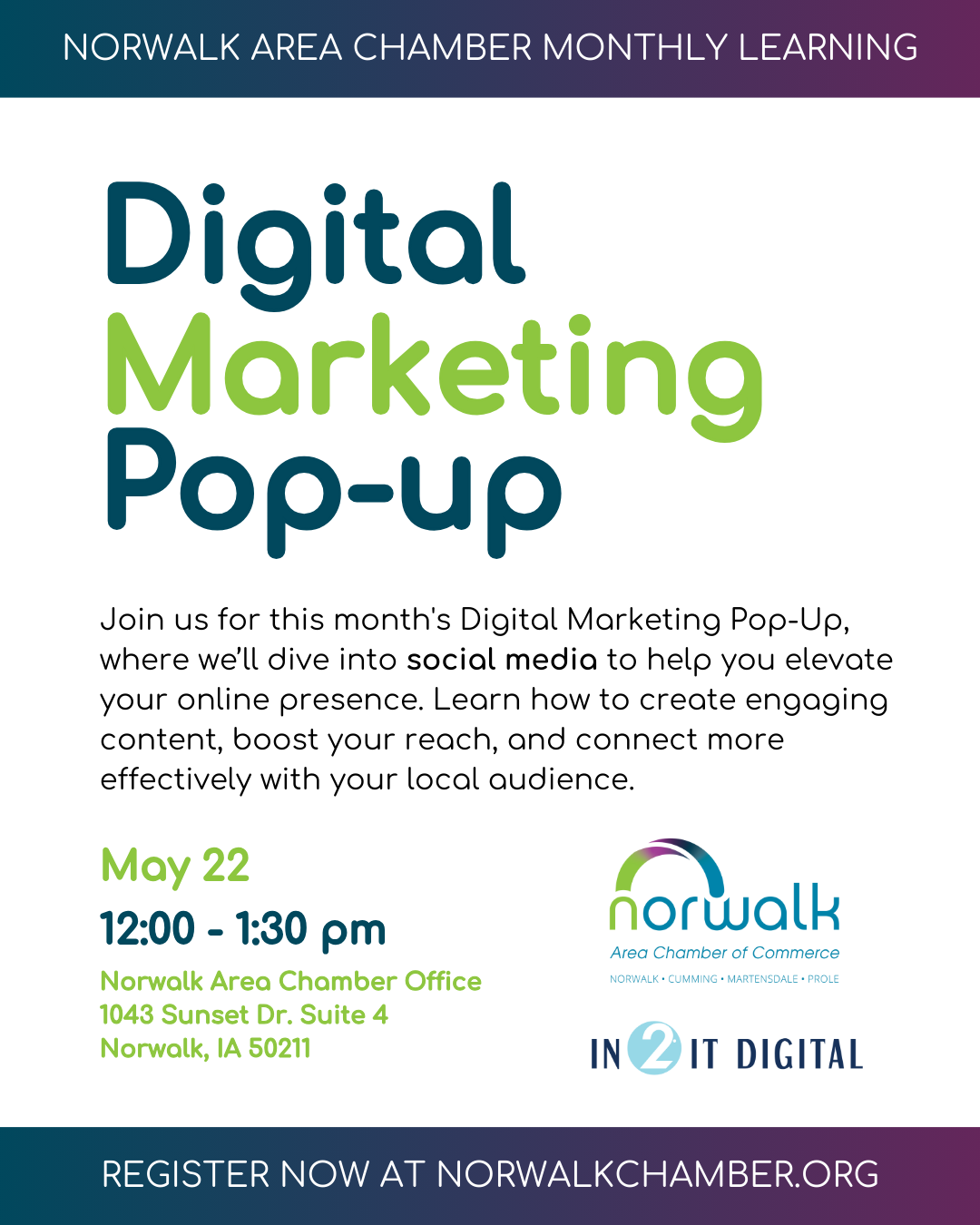 Ride your bike to work anytime between May 12–18 and send a photo to tlieu@norwalk.iowa.gov OR post your pic and tag us using @norwalkiachamber, #NorwalkBTWW or #CummingBTWW on Facebook or Instagram.