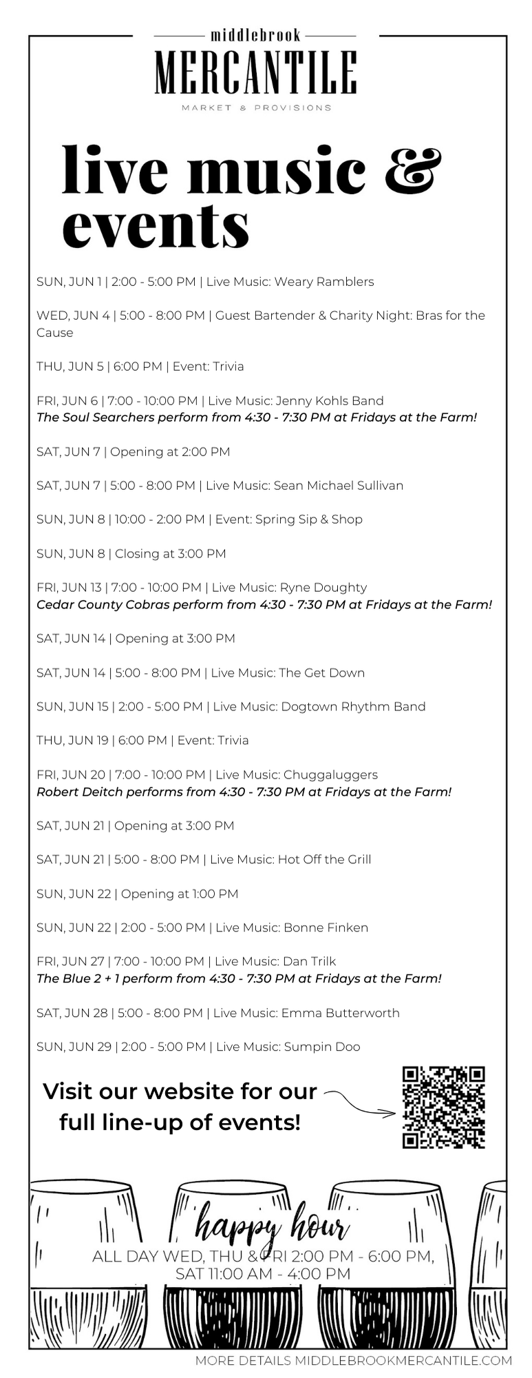 You’ll be automatically entered to win: • A $100 Visa Gift Card • A Gift Card + T-Shirt from The Chicken • A $50 Gift Card to The Middlebrook Mercantile • A $50 Gift Card from Ted Lare's Garden Center We’ll share all your photos on Friday, May 16, and a collage of community riders the following Monday, so don’t forget to snap a pic! |