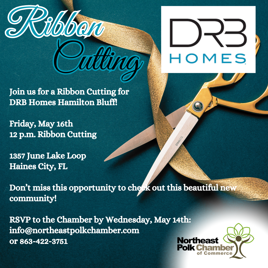 | You are invited to a Ribbon Cutting for DRB Homes Hamilton Bluff!