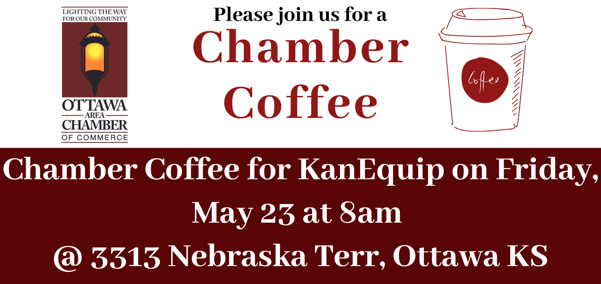 May 23 - 8am, Chamber Coffee for KanEquip @ 3313 Nebraska Terr, Ottawa