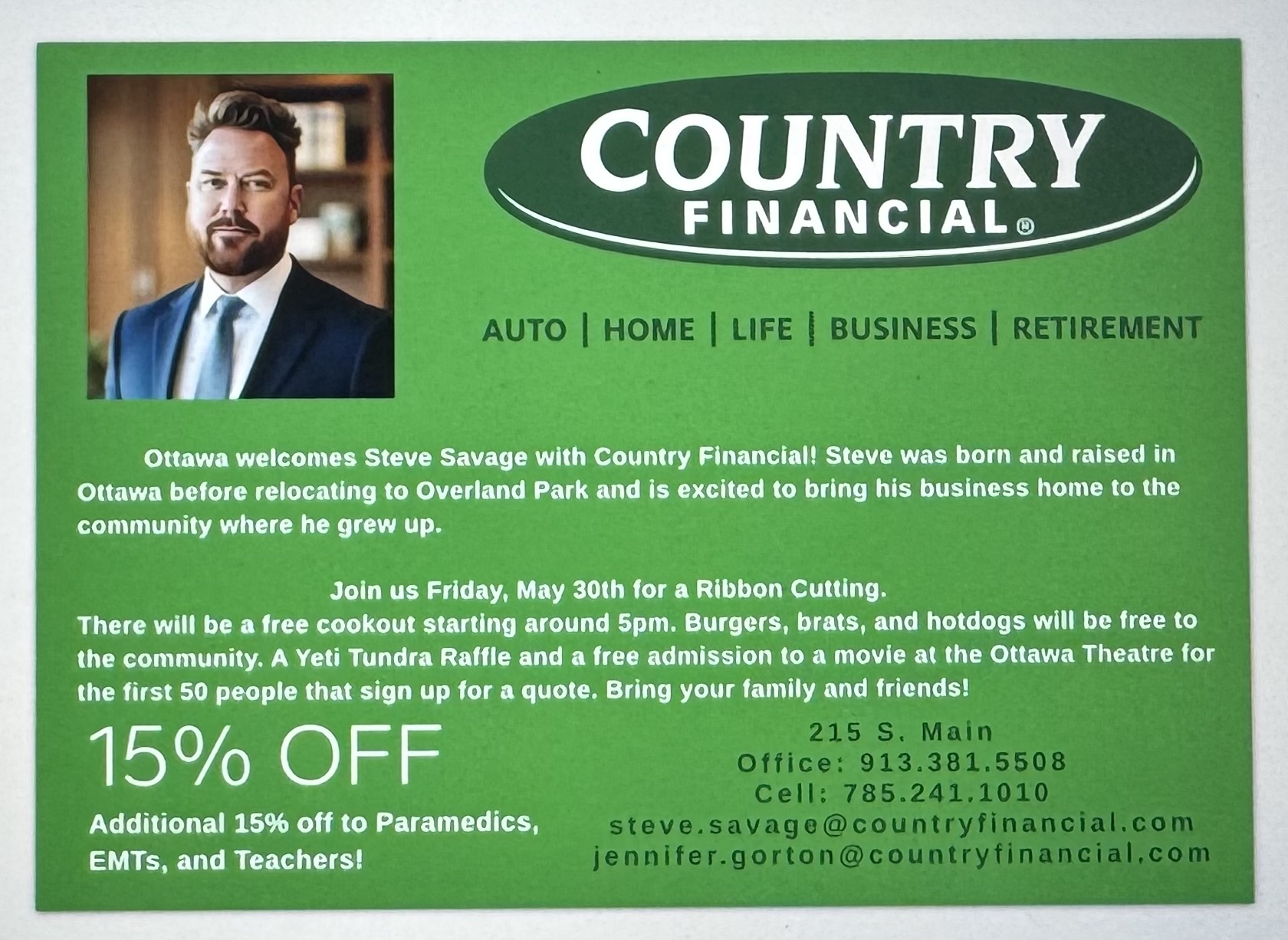 May 30 - 8am, Chamber Ribbon Cutting for Country Financial - Steve Savage @ 215 S. Main St. Suite 101