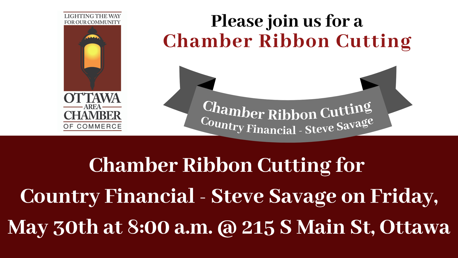 May 30 - 8am, Chamber Ribbon Cutting for Country Financial - Steve Savage @ 215 S. Main St. Suite 101