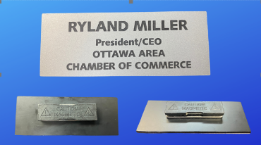 The Chamber is partnering with Hasty Awards to offer custom nameplates to our members, similar to those used by Chamber staff and volunteers. For just $5, you can order a magnetic nameplate featuring your name, title, and place of business. Simply complete the form by clicking the button below to place your order.