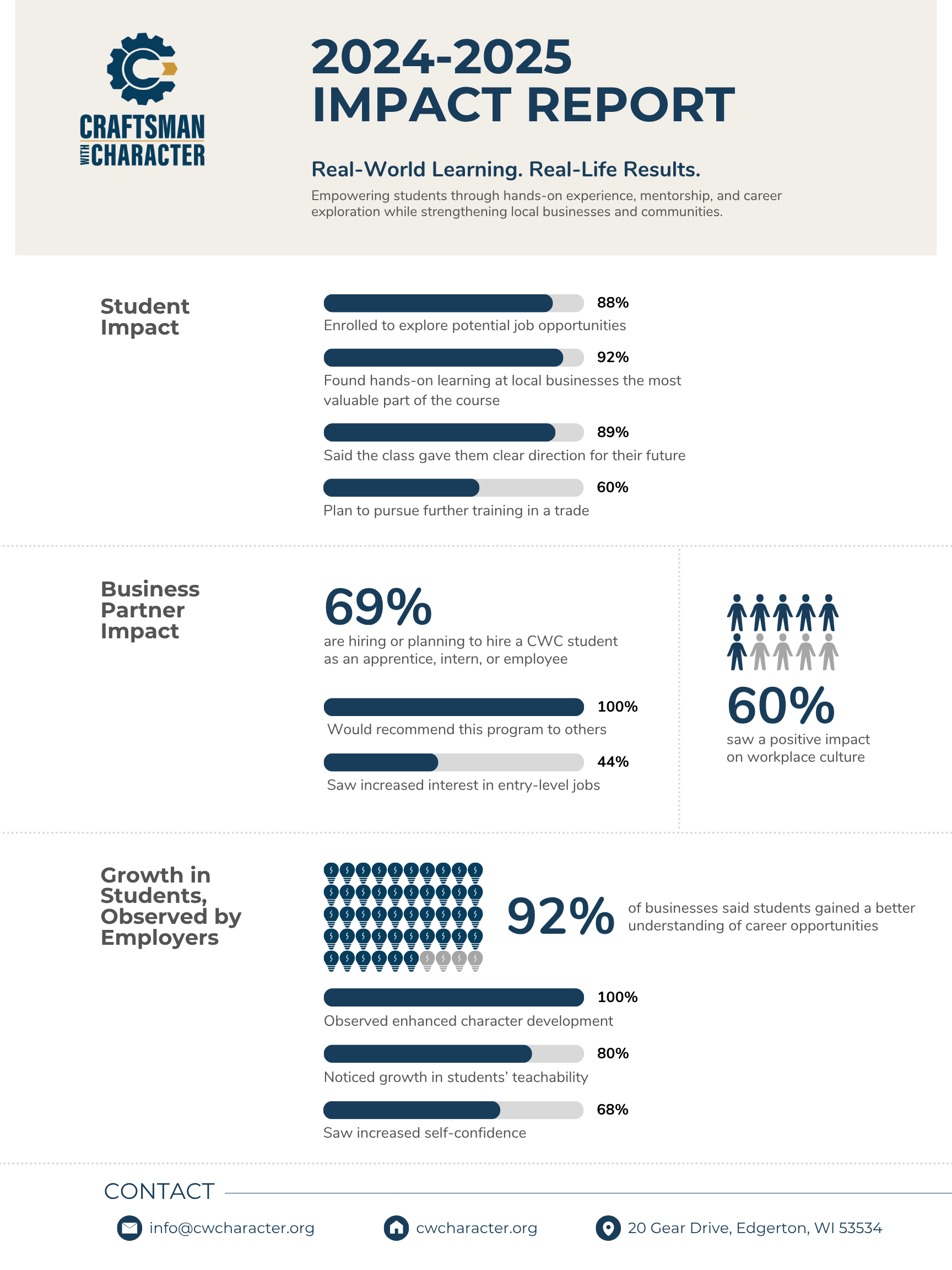 Across Wisconsin, Illinois, North Carolina, and Texas, this year’s CWC students are already making an impact. Check out the newly released CWC Impact Report. Click on the report image to enlarge. |