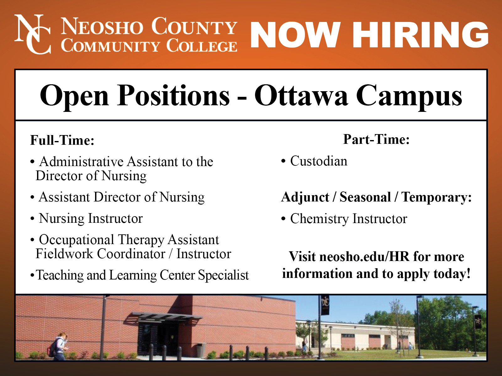 | Apply in person @ 208 S. Main in Ottawa. |