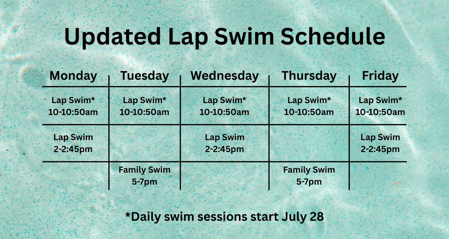 Plumas Parks and Rec has updated their lap swim schedule. Please see the calendar below. |