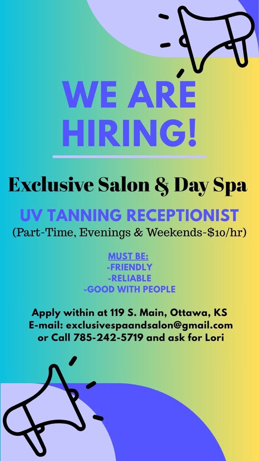 We are hiring!! Looking for career-minded individuals who are not afraid of bugs! Pest Control Technicians needed. Experience preferred, but not needed. Will train. Must be 18yrs of age, clean driving record, drug-free. Call 785-242-2844 for more information or to obtain an application. |