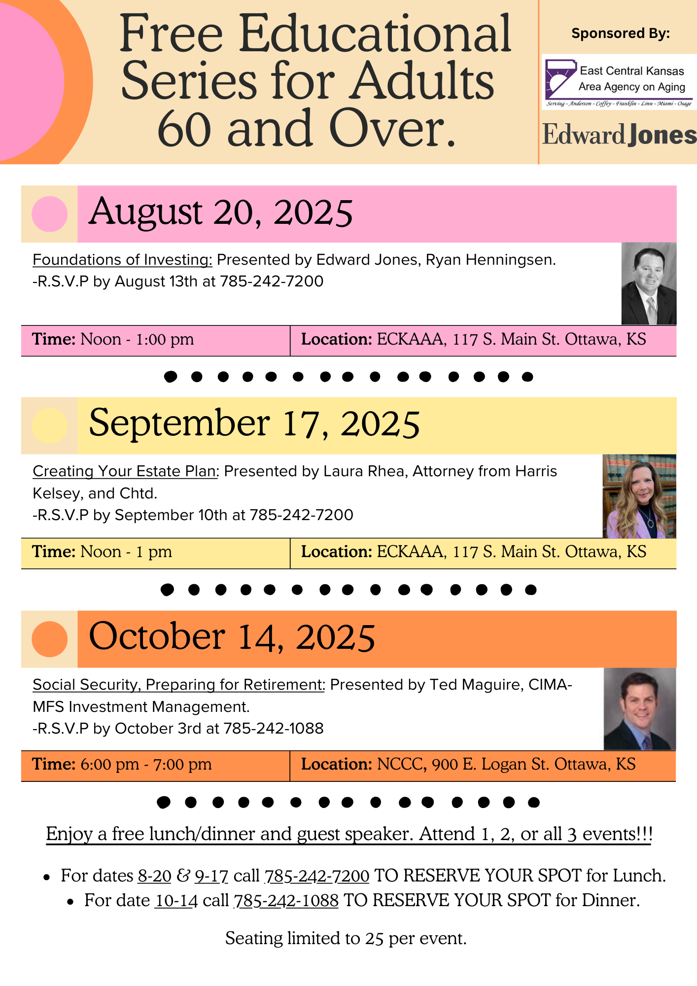 If you have any questions regarding Chamber events or have news or events you'd like to promote, contact us at (785) 242-1000 or email us at events@ottawakansas.org. Be sure to follow the Chamber on