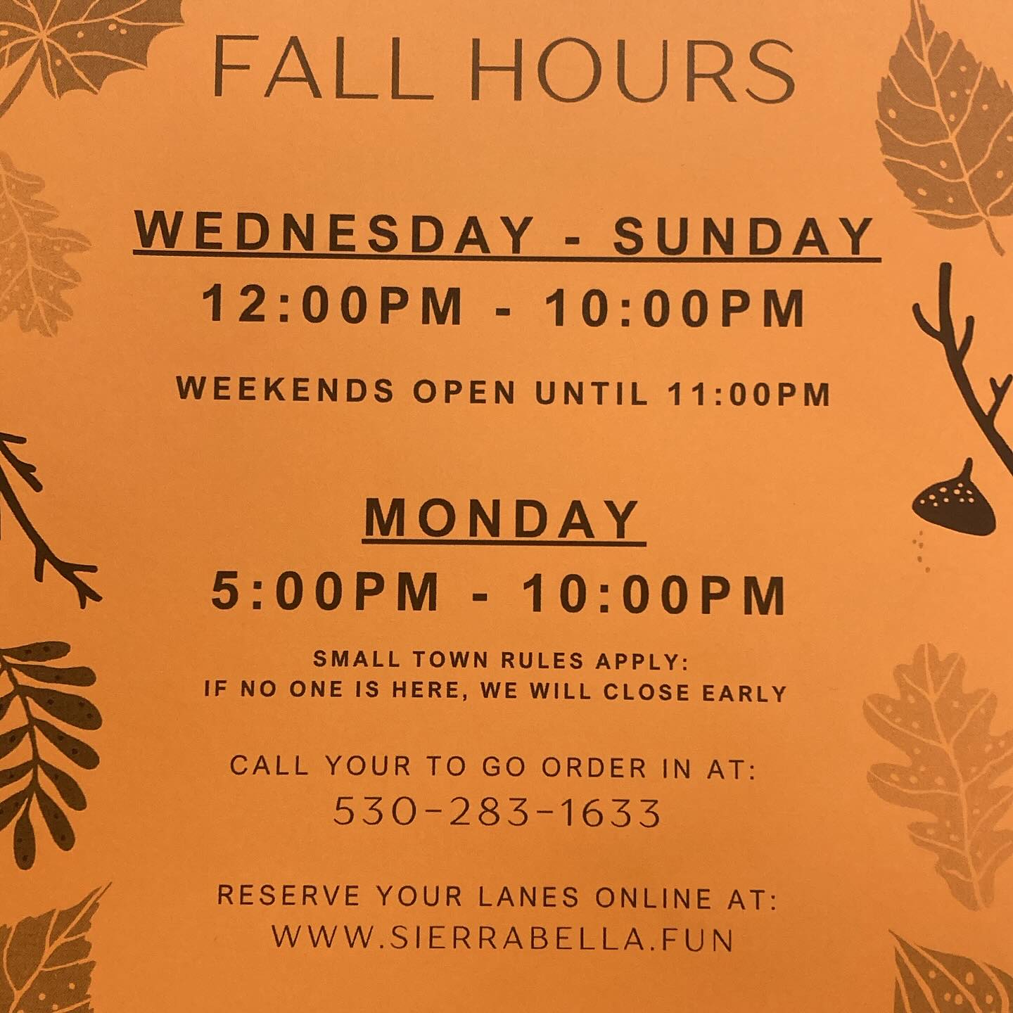 New Fall Hours at Sierra Bella Lanes