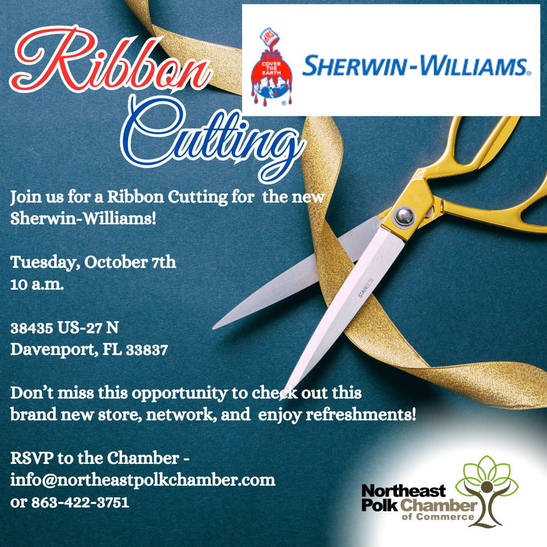 | Ribbon Cutting for the new Sherwin-Williams! Tuesday, October 7th 10 a.m. Ribbon Cutting