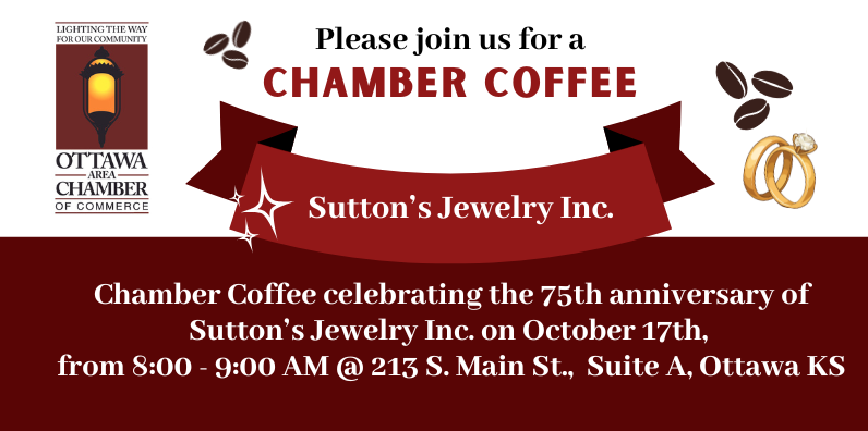 October 17th - 8:00 am, Chamber Coffee for Sutton's Jewelry in Celebration of their 75th Anniversary@ 213 S Main St, Ottawa