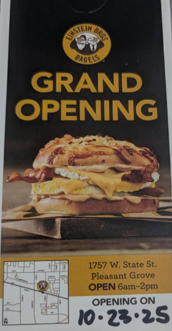 Einstein Bagels is having their grand opening on Thursday as well! Join us at their ribbon cutting at 11 and for some delicious food the rest of the day! |
