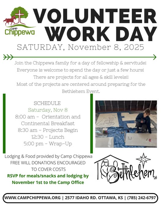 November 7th - 8:00 am, Chamber Coffee for Camp Chippewa & Retreat Center @ 2577 Idaho Rd, Ottawa.