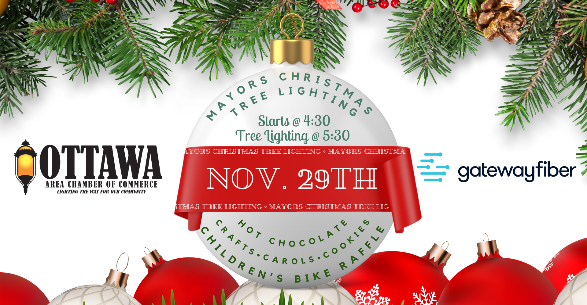 November 29th - 4:30 pm - 5:30 pm, Mayor's Christmas Tree Lighting @ the intersection between 2nd and Main St, Ottawa.
