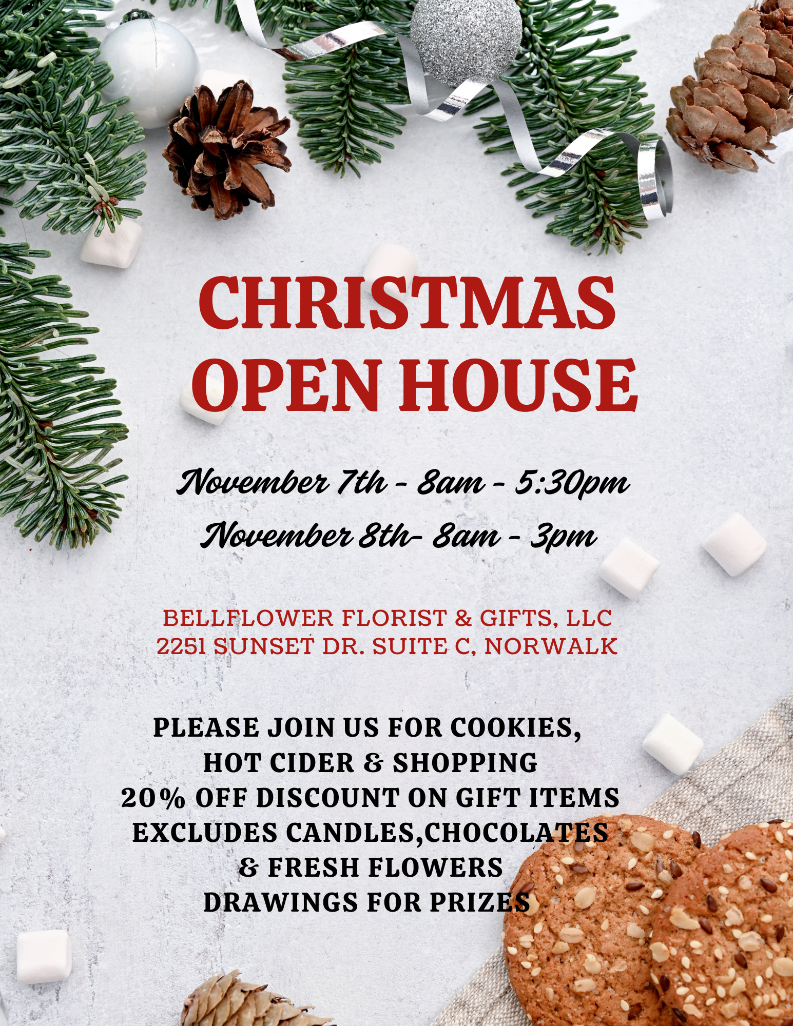 Bellflower Florist & Gifts is hosting a Centerpiece class at Iowa Distilling Company in Cumming, Iowa on December 2 from 6-8 p.m.. |