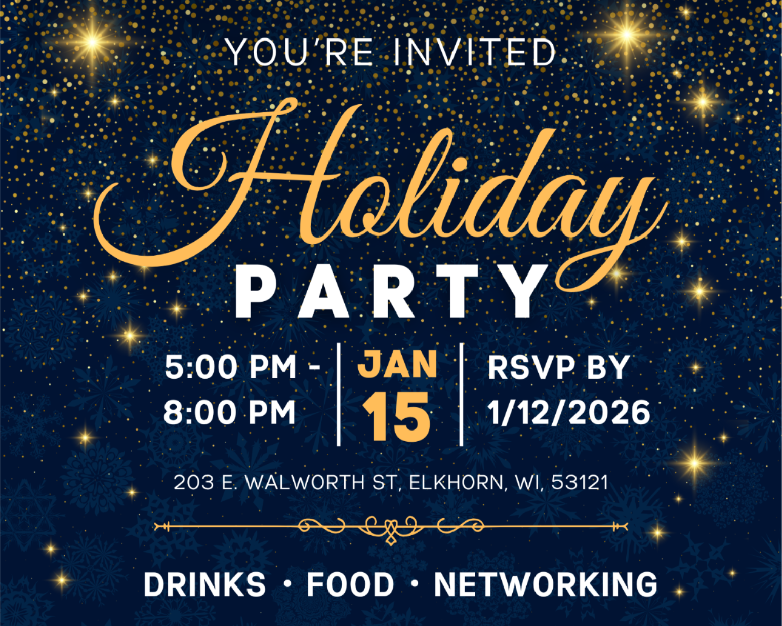 Thursday | January 15 | 2026 5pm to 8pm, Elkhorn Chamber of Commerce Are you a member of WCEDA or the Elkhorn Chamber of Commerce? If so, we cordially invite you to join us for a night of holiday fun!