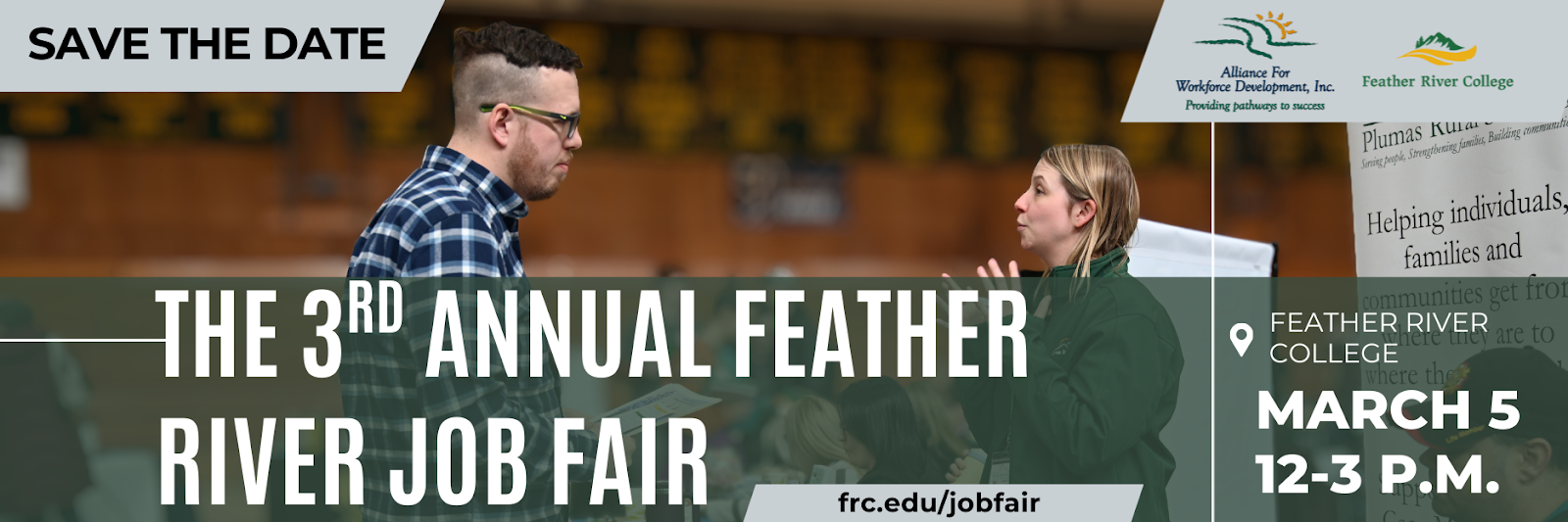 Feather River College, in partnership with the Alliance for Workforce Development, is thrilled to announce the return of the Feather River Job Fair. Local employers are invited to connect with FRC students, high schoolers, and the entire community to hire on the spot.