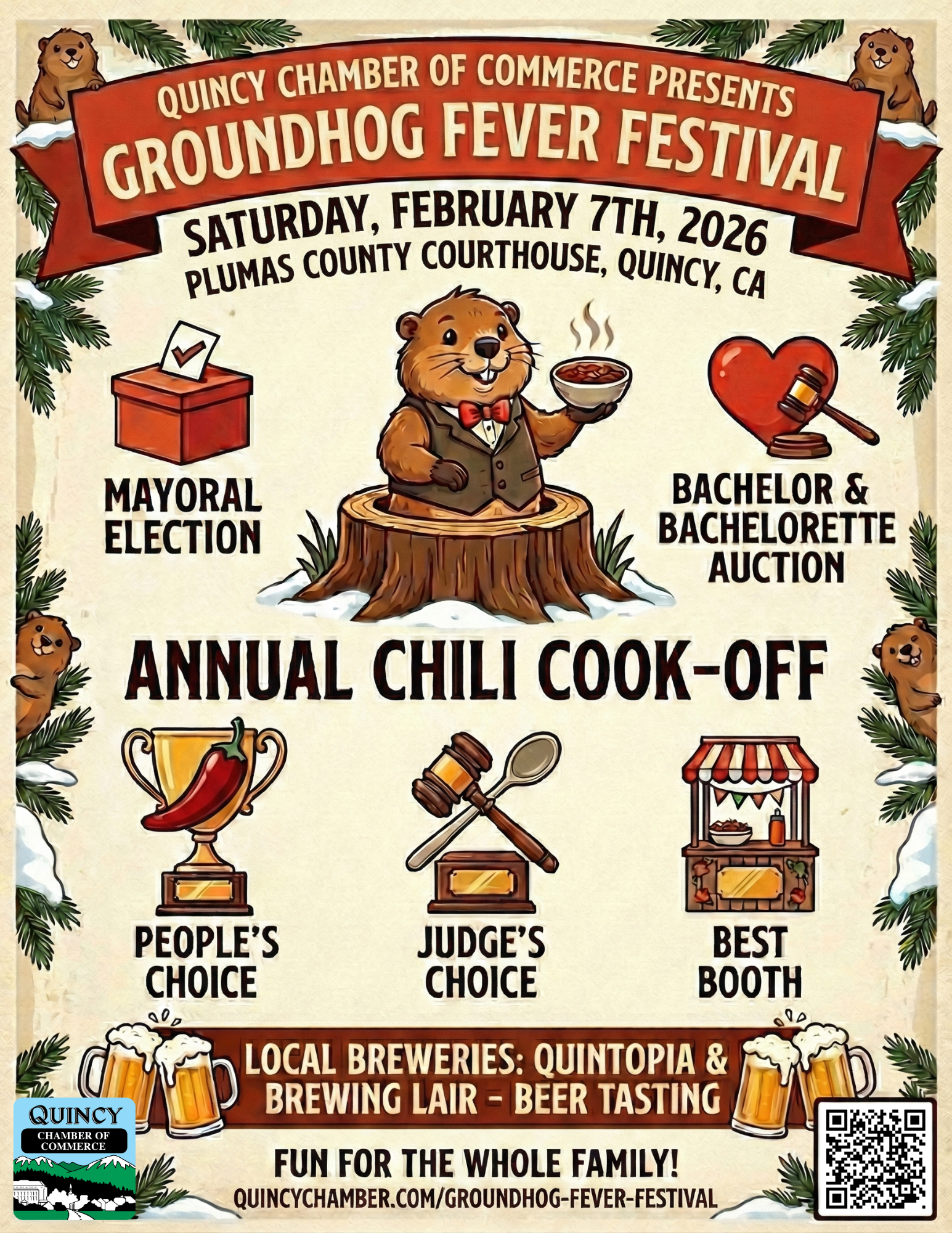 Get ready for a day of fun and local flair as the Groundhog Fever Festival returns to the Plumas County Courthouse in Quincy on Saturday, February 7th, 2026! This year’s event promises something for everyone, so mark your calendars.