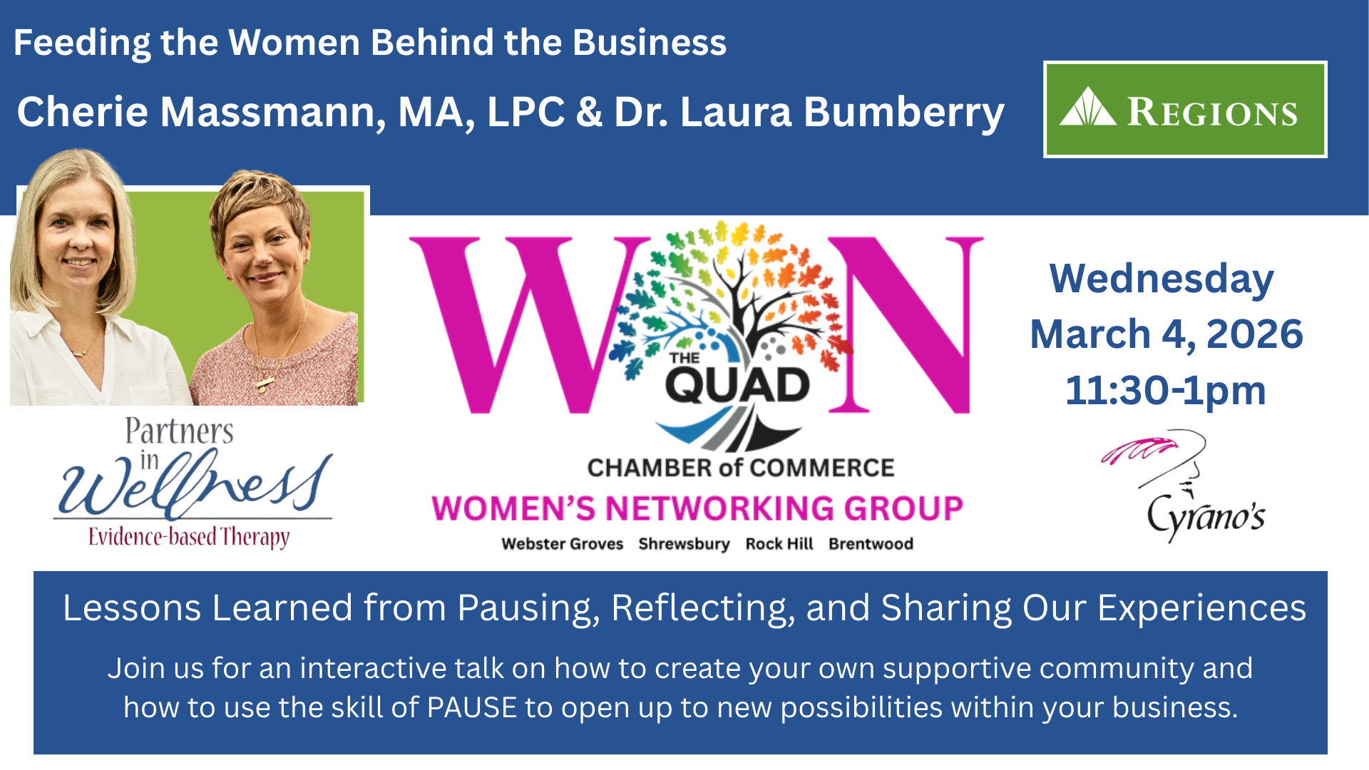 Throughout the afternoon, we met many new faces, reconnected with familiar ones, and strengthened the network of women who continue to uplift and champion each other. Events like this remind us of the incredible talent, leadership, and passion that exist within our community—and we can’t wait to do it again! A heartfelt thank you to our event sponsors, whose support made this gathering possible: Presented by: Regions Bank Participating Sponsor: The Novel Neighbor