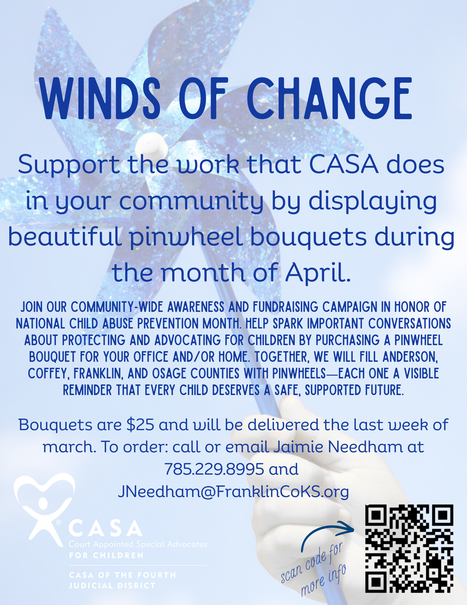 March 27th - 8:00 am, Chamber Coffee for CASA in honor of Child Abuse Prevention and Awareness Month (April) @ 315 S Main St, in the COURTROOM on the 2nd floor.