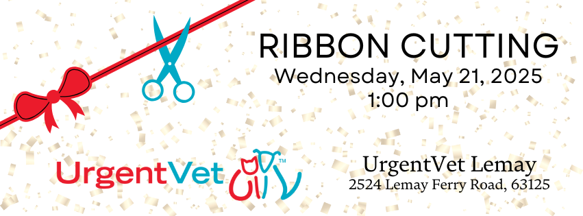 | 5/21/2025 | Ribbon Cutting Celebration at UrgentVet – Lemay! Join us in welcoming UrgentVet – Lemay to the community with a Ribbon Cutting Ceremony as they open their doors to provide compassionate, after-hours care for pets in need. Meet the team, tour the new facility, and learn more about the services UrgentVet offers for pets when they need care most. All are welcome—let’s give a warm community welcome to this new veterinary partner! Please RSVP to help your host plan! more info... |